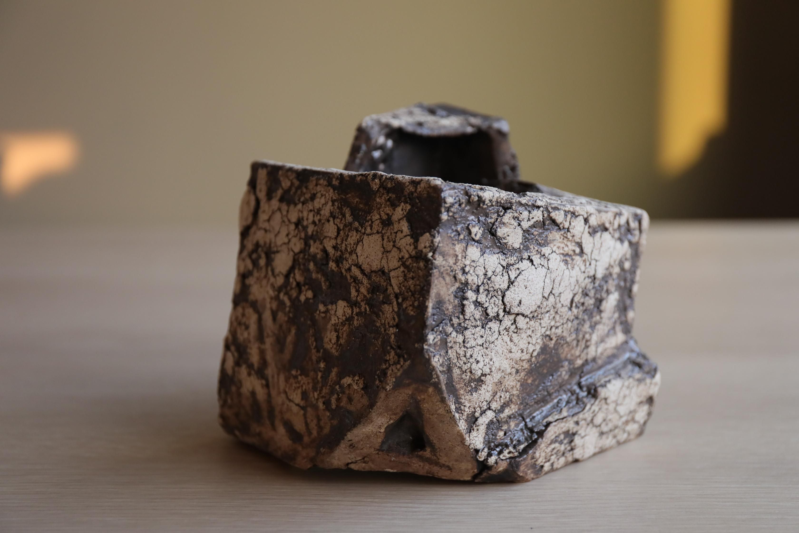 A cubic work that embodies movements of cracking, sinking, and rising.
